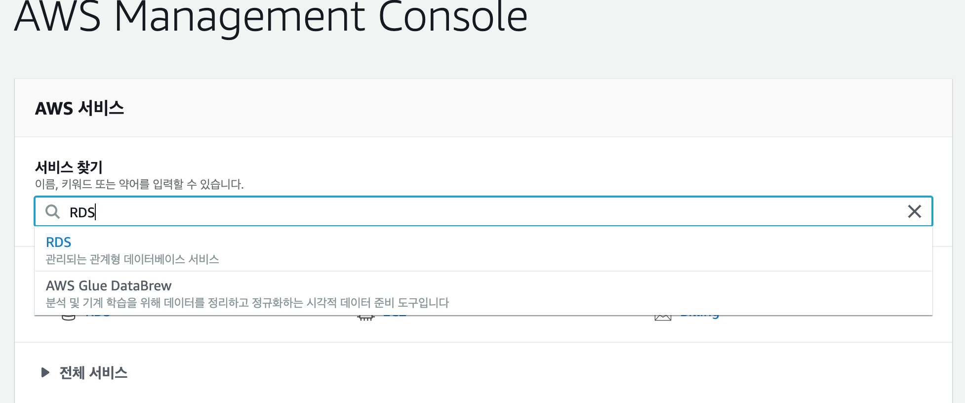 1. 서비스 찾기에서 RDS 검색합니다.
